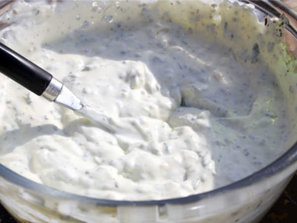 Reteta este foarte simpla, sosul este proaspat, cremos si merge de minune cu orice fel de friptura, legume la gratar, coapte, la tigaie sau chiar crude.