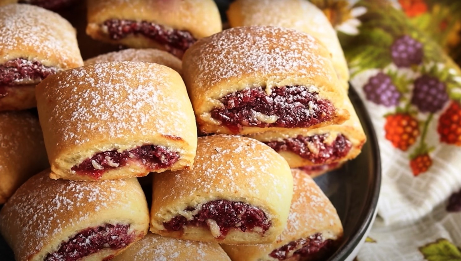 După coacere, fursecurile trebuie presărate cu zahăr pudră. Așa se obțin fursecuri simple cu fructe de pădure.